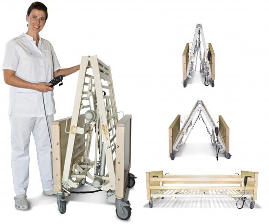 foarte usor si repede pentru utilizare sau transport(depozitare). Patul MODUX poate fi folosit si pentru servicii de inchiriere sau leasing. Spatiul de care aveti nevoie pentru un pat de ingrijire normal poate fi folosit pentru 3 paturi MODUX pliate. Marimea lui pliat este de numai 60 x 90 cm si poate fi usor transportat prin usa normala sau cu liftul normal sau chiar in autovehicul. Inchiderea si plierea patului se face in mai putin de 5 minute, printr-o simpla apasare de buton prin puterea motorului sau. Este durabil si sigur, de o calitate superioara cu parti solide din lemn, functionalitatile sale oferind posibilitati suficiente pentru ingrijire.