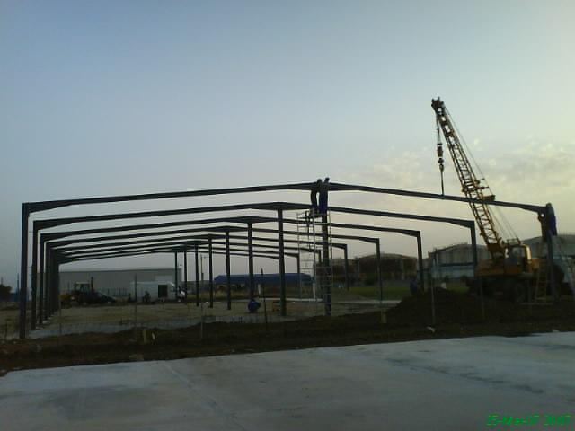 Vand din stoc structura metalica realizata din europrofile grunduit in 2 straturi gata de montaj . latime 25 m cu stalpi intermediari , lungime 28 m, inaltime la streasina 6 m. pret 45 000 euro plus tva .