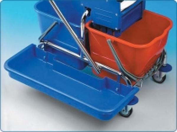 Suport / tava pentru mop profesional. Acesta se monteaza pe partile laterale ale carucioarelor profesionale de curatenie.pe una din tavi se pune mopul liniar si pe cea de a doua tava se poate pune 2 galeti de 6 litri