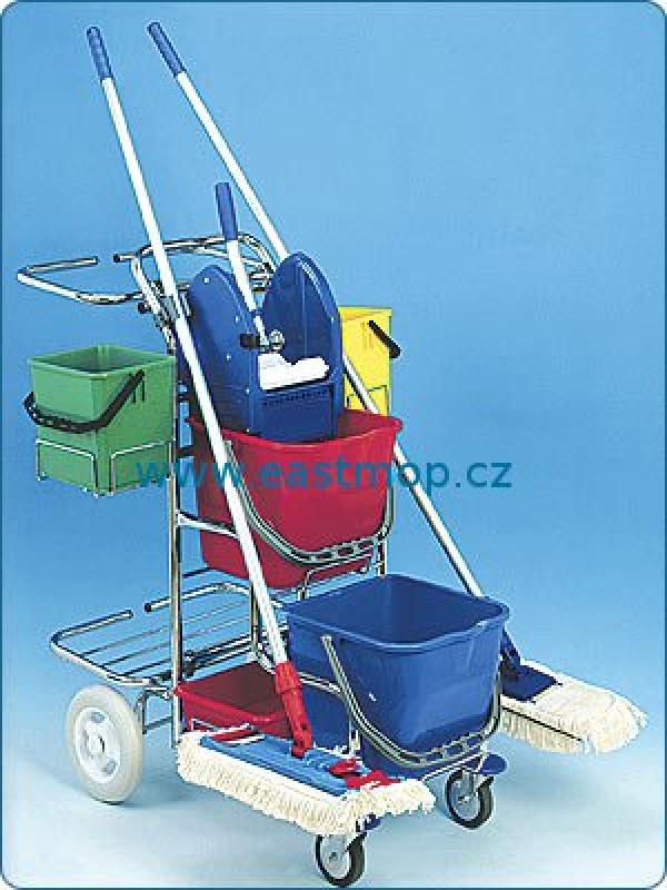 Carucior TERRY LINE II (cod : 21009T-2) Carucior multifunctional pentru curatenie echipat cu: baza cu roti (inox), 2 galeati x 17 litri/fiecare, suport pentru sac 120 litri, maner vertical, storcator profesional, 2 galeti x 6 litri/fiecare. Mopurile sunt optionale.