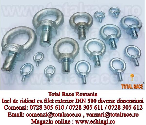 Total Race Romania comercializeaza inele de ridicare cu surub ( inele de ridicare tip tata) DIN 580 , inele de ridicare cu filet exterior DIN 580, ocheti de ridicare cu surub DIN 580, surub cu ureche DIN 580 – APS2 , inel cu surub DIN 580 , inel de ridicare din otel zincat pentru deplasarea greutatilor DIN580 , ochet insurubabil DIN 580 , inele ridicare insurubabile DIN 580. Material otel slab aliat.