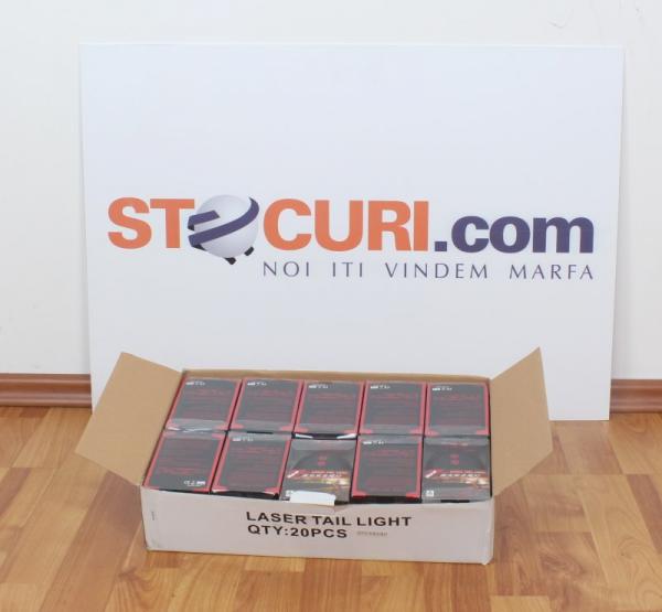 Lumini de avertizare cu laser pentru biciclete, sunt lumini special create pentru biciclete, foarte utile in timpul noptii. Materialul este din plastic, culoare rosie, luminile sunt cu leduri si fascicule laser, pe baza de baterie. Vizibilitatea farurilor este de peste 1km, eficienta luminoasa. Are doua comutatoare de culoare rosie pe partea din spate a functiei de siguranta. Atunci cand nu este uitlizat, comutatorul trebuie sa se inchida. Nu se uita direct la lumina Led. Pentru o lumina cat mai puternica se folosesc baterii de calitate. Nu sunt rezistente la apa.Lotul contine 20 de bucati.