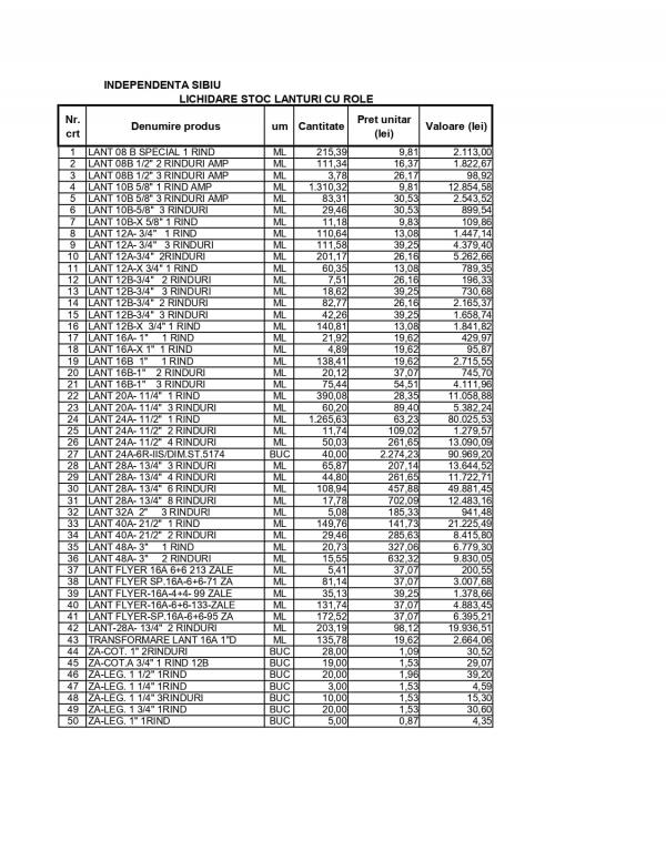 Nr. crt Denumire produs um Cantitate Pret unitar (lei) Valoare (lei)