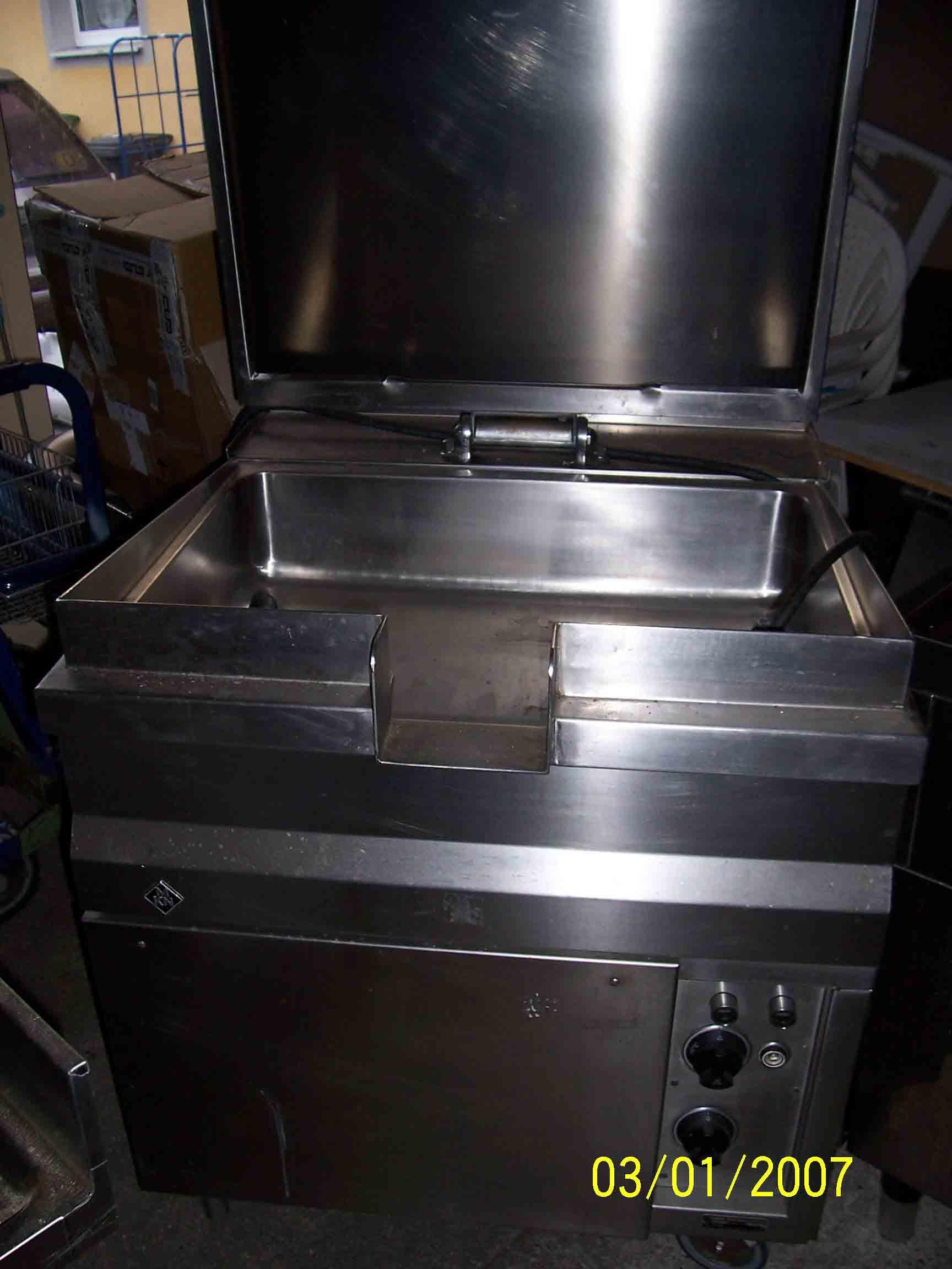 Vind Tigaie basculanta marca MKN cu ridicare automata al tigaii prin apasare la buton ,cantitate tigaie ca. 40-50 litri ,ideal pt. bucatarii mari ,spitale ,restaurante mari. Utilajul se afla pe role se poate misca in se directie doriti ,totul inox .Utilajul este alimentat cu tensiune 380v~ 5,4kw .