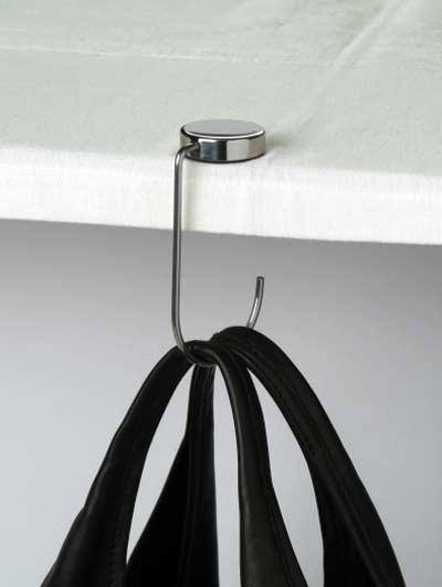 Cand mergi la birou, la banca, la un restaurant si nu ai un scaun cu spatar special pe care sa iti agati geanta si sacosa, o pui pe jos riscand sa se rastoarne sau sa o pierzi din vedere, riscand sa o uiti sau sa-ti fie furata.