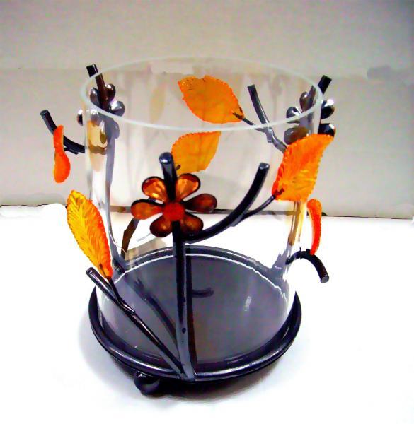 Suport lumanare din fier forjat, cu decoratiuni, sticla transparenta Bucati per pachet : 36 Pret:...